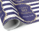 Feliz 80 Birthday Dourado Glitter e Marinho Blue Wrapping Paper com nome personalizado. Para mais personalização, clique no botão "Personalizar" e use a ferramenta design para modificar este modelo