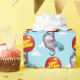 Use "Personalizar esta modelo" para alterar o texto no balão. Enrole o presente de aniversário de alguém neste papel colorido, com um opositor fofo num chapéu de festa listrado, flutuando num grande balão vermelho enquanto soprava uma sopradora de festas torcidas.