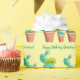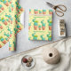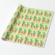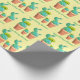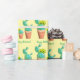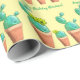 Este design de papel embrulhado no estilo sudoeste apresenta três plantas de cacto com pontas, duas com flores amarelas. A mensagem de texto de celebração de aniversário feliz pode ser alterada no campo modelo para qualquer coisa ou removida.