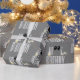 White Happy Birthday texto sobre fundo de cinza com balões pretos, confete, faíscas e vela. A cor de fundo pode ser alterada.