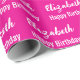 Papel De Presente Feliz Aniversário Branco Nome Rosa Quente