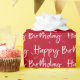 Fonte divertida de texto de aniversário feliz com confete colorido em fundo vermelho. A cor de fundo pode ser alterada.