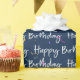 Fonte divertida de texto de aniversário feliz com confete colorido em fundo azul marinho. A cor de fundo pode ser alterada.