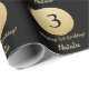 Papel De Presente Feliz aniversário de 3 anos preto e Dourado brilho