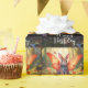 Um coelho branco com asas de fada coloridas senta-se num galho numa floresta encantada, cercado por luz brilhante e folhas em queda. A atmosfera vibrante e mágica aponta para uma aventura fantástica. Texto de Parabéns