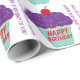 Papel De Presente Feliz aniversário do Cupcake Roxo do Glacé