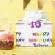 Feliz Aniversário, Doce Dezesseis! As palavras Parabéns em cores do arco-íris cobertas de glacé branco. Tema da festa, pronto para o seu grande dia! Adicione seu nome para personalizar! Forte tema do arco-íris, muito fofo para garotas femininas!