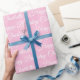 Feliz Aniversário elegante script personalizado nome e padrão de texto papel de enrolar de presente rosa. Padrão de texto branco totalmente personalizável no plano de fundo da rosa claro para que você possa personalizá-lo e torná-lo exclusivo. Todas as cores também são editáveis.