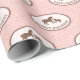 Este papel de embrulho apresenta uma silhueta de cavalo de mãe e bebê em castanho sobre fundo rosa. Abaixo dos cavalos diz "feliz aniversário".