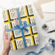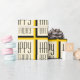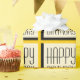Dourado papel de embrulho de Feliz Aniversário num padrão geométrico ousado.