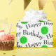 Mensagem de aniversário negra feliz em um fundo branco com bolas de picles verdes. A cor de fundo e o texto podem ser alterados.
