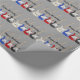 As guitarra legal, elétricas em um fundo de prata, são caracterizadas neste legal, papel de embrulho do aniversário!