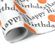 Papel De Presente Feliz Aniversário Laranja Picklebolas em Branco