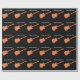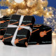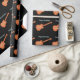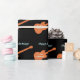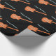 As guitarra legal, alaranjadas em um fundo preto, são caracterizadas neste legal, papel de embrulho do aniversário para um marido!