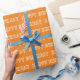 Feliz Aniversário, cor de laranja e padrão branco, moderno Papel de Embrulhamento de presente