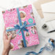 Celebre um aniversário especial com um presente personalizado! Este modelo fofo e na moda é personalizado com o nome do seu filho, a idade e seis fotografias favoritas! Um papel de empacotamento uniforme, com quadros redondos, com um balão e estrelas. Cores impressas: rosa claro, cor-de-rosa-doce, turquesa e branco.