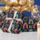 Borras de chuva brilhantes Douradas, cor-de-rosa, azuis, verdes e roxas em papel de embalagem de aniversário preto. Personalize facilmente o nome e a idade de um 12 personalizado ou de qualquer ano. Enrole seus presentes em papel glamouroso para sua garota de aniversário.