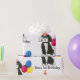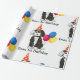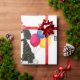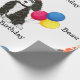 Feliz Aniversário do Costume Black & White Bernedoodle vestindo chapéu vermelho de aniversário com corações, balões coloridos de aniversário. Desejos personalizados de aniversário, adicione o nome do seu cão de rabisco e o ano de aniversário a este divertido papel colorido de embrulhar o dia!