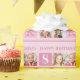 Um papel de empacotamento feliz de aniversário de colagem de 3 fotos para uma garotinha ou criança. Comemore o aniversário do seu filho com fotos bonitinhas delas neste, adicione seu próprio presente de fotografia com quadrados bonito adoráveis. Adicione seu nome e idade.