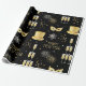 Papel de embrulhamento de Anos novos Dourados e pretos.