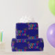 Folha de papel brilhante para embalagem de 30" x 6" com imagens de "Feliz ano novo" impressas em caracteres de bloco multicolores e dois fogos de artifício dourados em azul real. Veja confetti, label, adesivo quadrado e vinil autocolante personalizado. Consulte a coleção inteira de papel de enrolamento de ano novo na categoria HOME na seção HOLIDAYS.