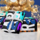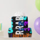 Design colorida com grande Feliz ano novo 2023 + + coelho + ideograma de coelho. Design sobre papel embrulhado com fundo preto. Você pode facilmente alterar o texto (fonte, cor, tamanho e posição) e a cor do plano de fundo clicando no botão personalizar.