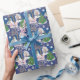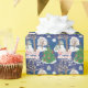 Árvores de Natal com árvores de inverno e lua em fundo azul.