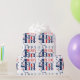 Mostre seu patriotismo com esse design de padrão do Dia da Independência - Feliz design de texto moderno de 4 de julho em um design patriótico vermelho, branco e azul.