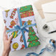Espalhe a alegria de feriado com este vibrante papel embrulho mostrando uma variedade colorida de ornamentos, luzes cintilantes e frases festivas. É a maneira perfeita de fazer seus presentes brilharem