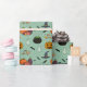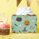 Feliz Dia das Bruxas II - Combinando ícones do Halloween - caldeirão das bruxas, chapéu de bruxa, fantasmas, morcegos e abóboras num padrão de fundo uniforme em verde.