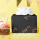 O papel de empacotamento do Feliz Dia das Bruxas usa a popular tipografia de folhas laranja.