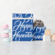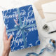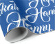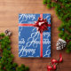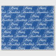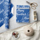 Feliz papel de moldagem de presente de Natal elegante e Azul Hanukkah e branco. Padrão de texto de script branco na cor azul de fundo.