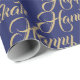 Feliz Hanukkah faux gold e marinho azul moderno e modelo elegante de script Wrapping Paper. Padrão de tipografia de script dourado em fundo azul-marinho.