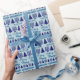 Personalize este tipo de papel de embrulho Chrismukkah adicionando o nome do seu filho à árvore de Natal azul marinho e ao padrão de Chrismukkah Menorah e crie algo muito especial para debaixo da árvore. Concebido para famílias inter-religiosas que celebram feriados cristãos e judeus, este papel de embrulho bonito com texto azul escuro que apresenta a sua escolha de nomes num fundo de azul pastel pálido está preparado para deliciar. Adorável para crianças e adultos e tão fácil de personalizar, este pacote de presente personalizado com árvores azuis e menorras marinhos é uma adição divertida às celebrações combinadas de Natal e Chanucá. Feliz Feliz Chrismukkah!