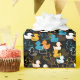 Bela forma de desenho animado sobre uma equipe de patos nadando. Cor brilhante colorida em fundo preto. Um presente bonito para quem ama coisas bonitas.