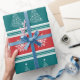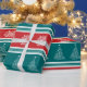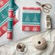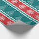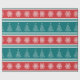 Ilustração feliz de Natal com árvore de Natal e decoração de flocos de neve em fundo vermelho, branco, azul e turquesa listrado