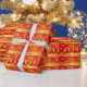 Papel De Presente Feliz Natal Baubles Red Dourados Ornaments