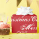 Feliz Natal, vermelho e branco, o padrão de caligrafia elegante de presente. Texto preto personalizável sobre fundo branco.