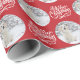 Papel de embrulho fotográfico, personalizado com sua fotografia e com a mão gravada com Feliz Natal em caligrafia escovada. O modelo de fotografia está configurado para apresentar a sua imagem em forma redonda. Se tiver algum problema com o posicionamento da imagem, tente recortar a foto em um quadrado e carregá-la novamente. A cor de fundo é vermelha, que você pode alterar (basta clicar em "editar usando a ferramenta design").