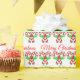Um papel de embrulho festivo com Feliz Natal escrito em uma letra vermelha ou verde e canas doces amarradas com Holly.