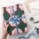 Este papel de embrulho festivo e personalizado apresenta uma estrutura externa com um design de cana doce vermelho e branco de menta pimenta. A frase especial "Selo Oficial do Polo Norte" é impressa no topo. A saudação "Feliz Natal" é seguida de um nome personalizado que você pode personalizar para incluir o nome ou o destinatário do seu próprio filho. "De Papais noeis" é impresso na parte inferior com as letras do nome "Papais noeis" impressas em uma fonte de estilo natalino. A distribuição acelerada é impressa abaixo. O fundo é uma floresta verde-escura e rica.
