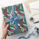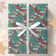 Este papel de embrulho de Natal apresenta um moderno design de padrão floral com texto HAPPY HOLY DAYS.