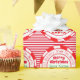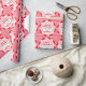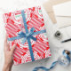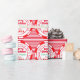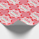 Este festivo e temático de Natal que embrulha apresenta uma estrutura externa com um design vermelho e branco de menta-pimenta. A frase "Entrega especial do Polo Norte" é impressa em um padrão circular ao redor da área de texto. A saudação "Feliz Natal" está impressa no topo com uma fonte vermelha e caprichosa. Um nome de exemplo é impresso abaixo dele em verde, que você pode personalizar para incluir seu próprio nome personalizado ou destinatário. "De Papais noeis" é impresso na parte inferior, com as letras do nome "Papais noeis" impressas em caracteres de estilo natalino em cor vermelha e cortadas com neve caída. Vários flocos de neve azuis-claros são colocados ao redor das letras. As listras vermelhas e brancas correm horizontalmente ao longo do invólucro de presentes.
