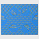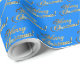 Feliz Natal Elegante Faux Gold Foil Script Text Padrão no Texto do Ouro no Cerulean Blue Background Holiday Season Glossy ou Matte Gift Wraping Paper, você pode adicionar nome ou texto