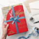 Feliz Natal Elegante Faux Gold Foil Script Text Padrão no Texto do Ouro no Poinsettia Background Holiday Season Glossy ou Matte Gift Wrapping Paper, você pode adicionar nome ou texto