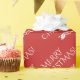 Estas características de design respeitáveis e luxuosos do papel de envolvimento do Natal a mensagem "FELIZ NATAL!" no texto colorido branco em um vermelho coloriu o fundo. O papel de envolvimento como este pôde ser usado para envolver os presentes que estão sendo dados em comemoração do Natal.