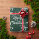Feliz Natal, pinho escuro, verde e branco, escrita personalizada caligrafia, elegante papel de enrolar presente