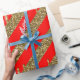 Papel De Presente Feliz Natal - faixa vermelha de brilho