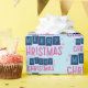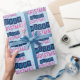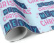 "Feliz Natal Feliz Festa Festiva Deseja Papel Azul de Enrolar" mostra um design festivo com texto colorido de "Feliz Natal", trazendo um toque alegre e brilhante ao seu embrulho de presente.