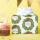 Esta festiva design de Natal apresenta um padrão de coroa com arco vermelho, luzes e ornamentos e tipografia "Feliz Natal" na dentro.